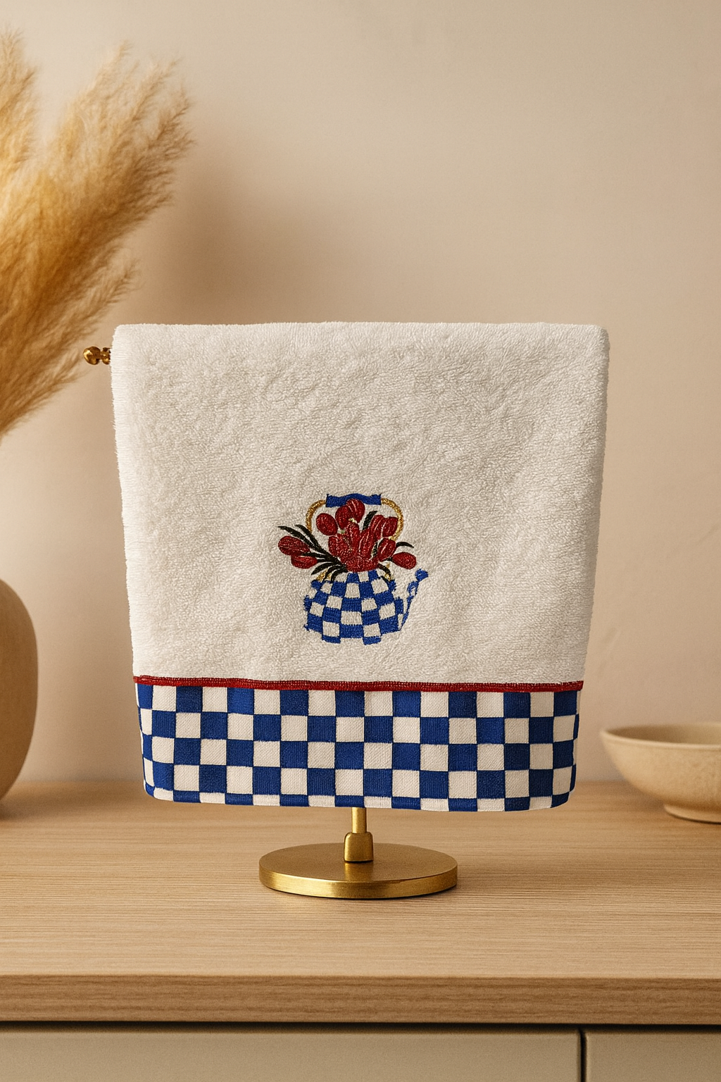 30×50 cm ideal ölçüsü, hem tezgâh üstünde hem de askıda pratik kullanım sağlar. Dayanıklı pamuk yapısı uzun ömürlüdür; sık yıkamaya uygundur ve formunu kaybetmez. Nakışlı yüzeyi, her modelde farklı bir estetik sunarak Haussen’ın zamansız tasarım anlayışını yansıtır.